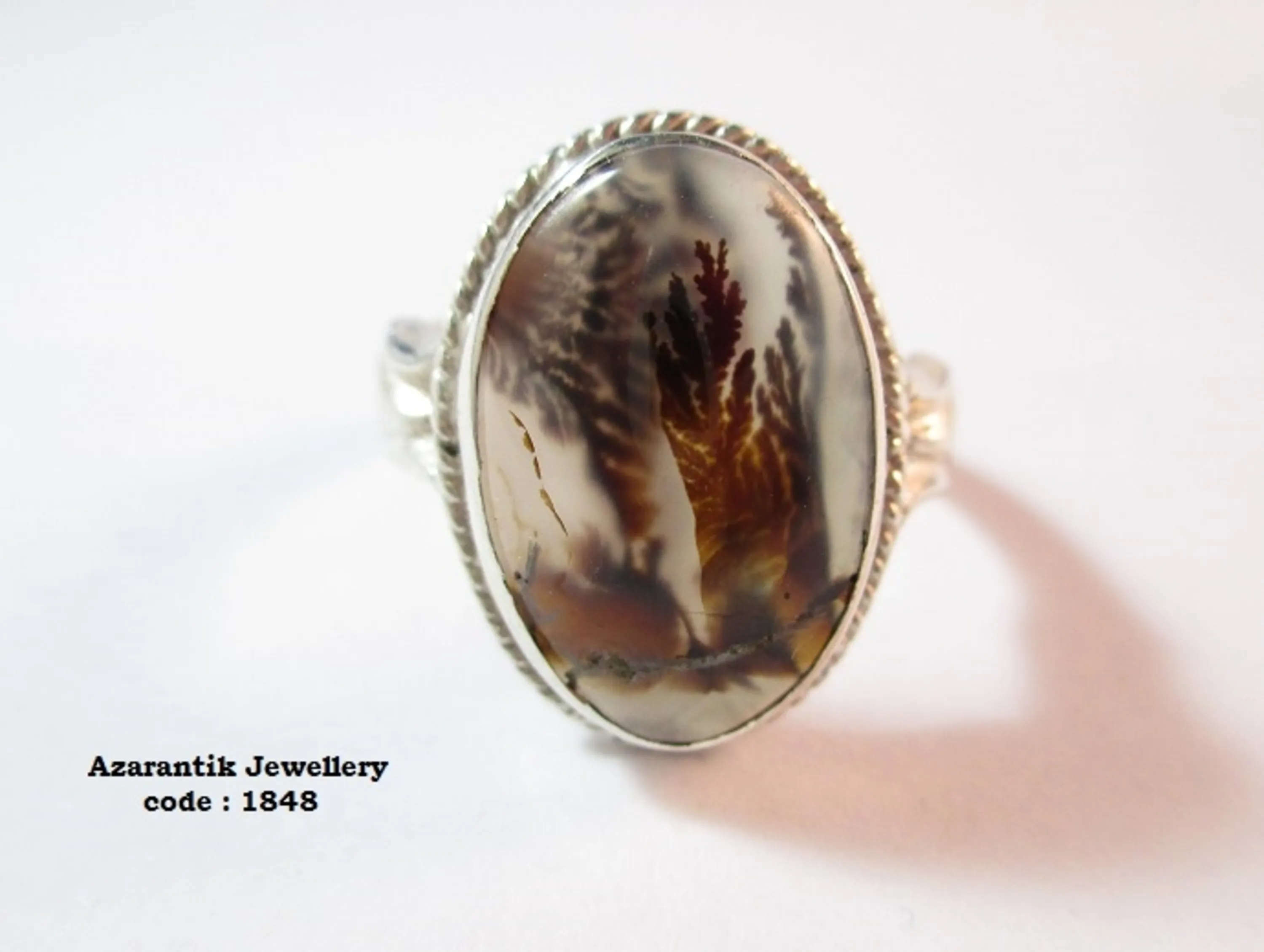انگشتر شجر اصل با رکاب نقره 925 سبک ** دارای یک رگه بیرونی یا ترک طبیعی روی نگین