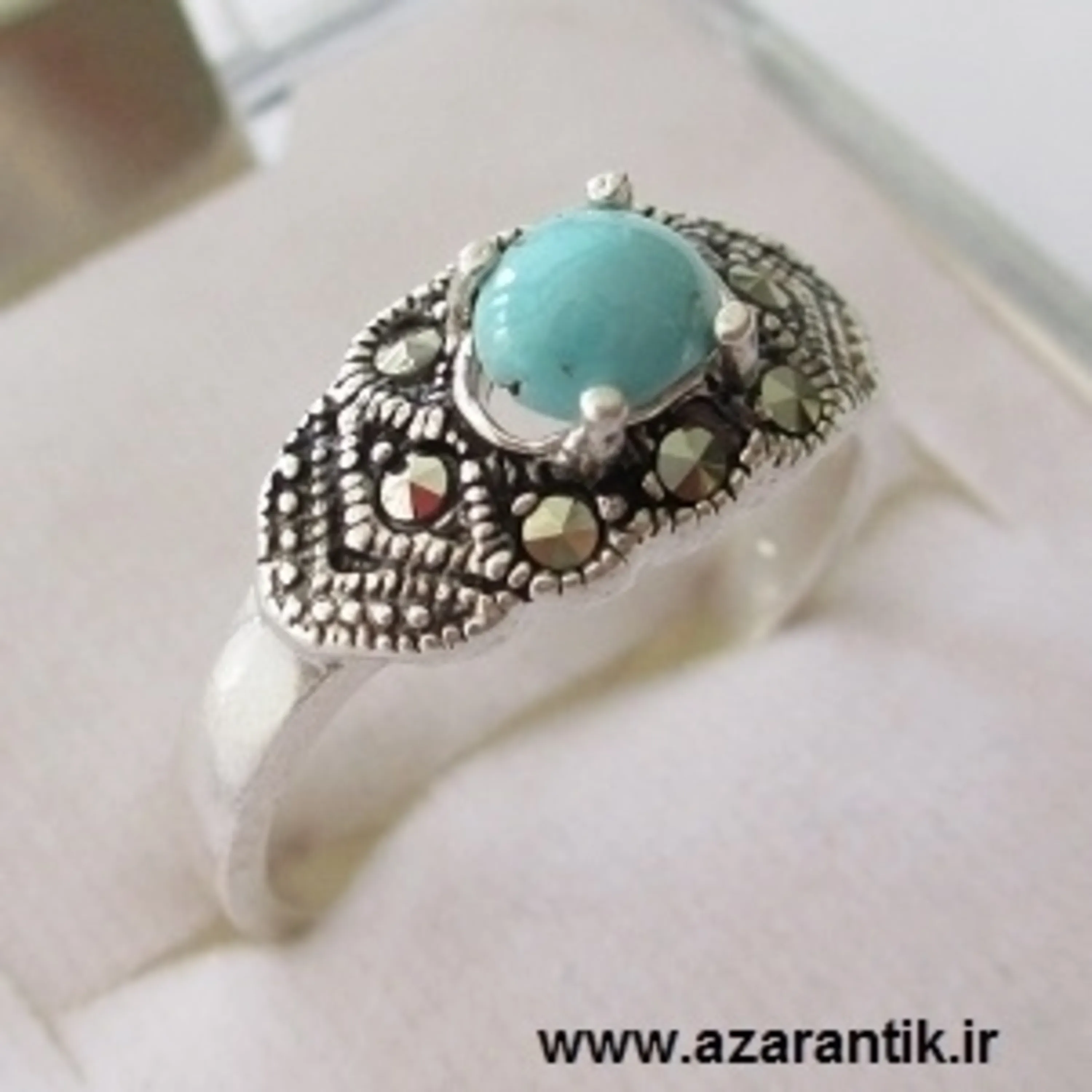 جنس رکاب : نقره عیار 925 | جنس نگین :فیروزه نیشابور اصل + مارکازیت |