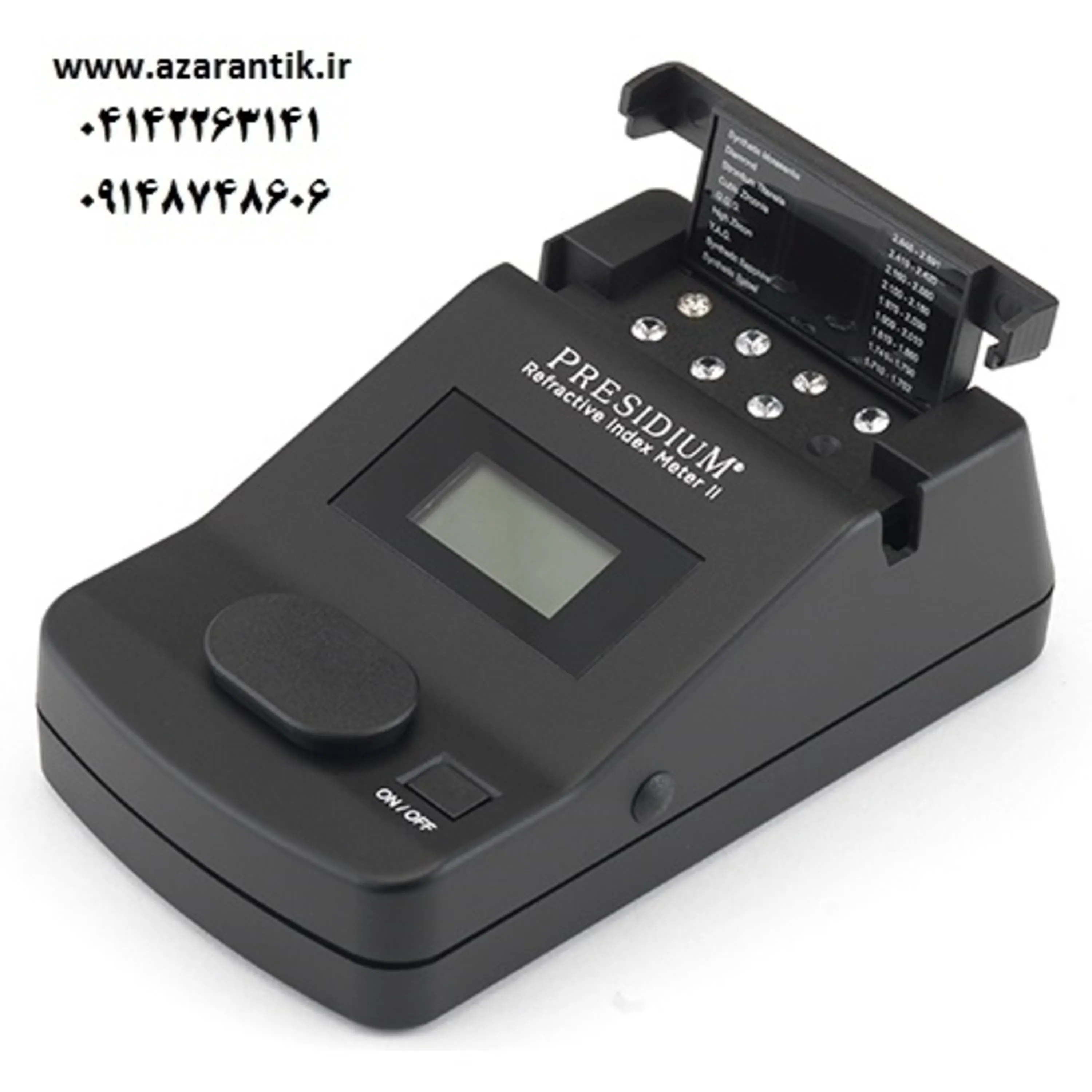 تستر دیجیتال رومیزی که با استفاده از ضریب شکست به سرعت انواع گوهرها، الماس، مویزانایت و دیگر شبه الماسها را تفکیک میکند.