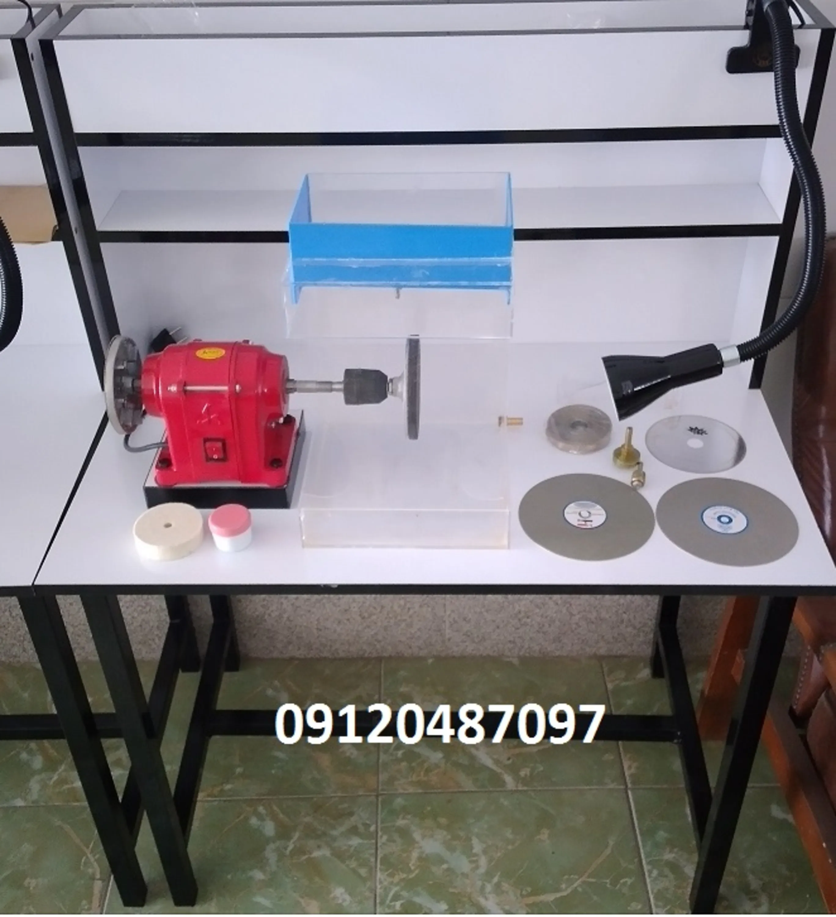 معرفیمیز کامل گوهرتراشیبرش + تراش + پولیششامل:میزموتورسیستم آب دو عدد صفحه سگمنت تراش 4 ورق سنبادهسی بی ان اکراینیصفحه برشپودر کرمچراغعینک