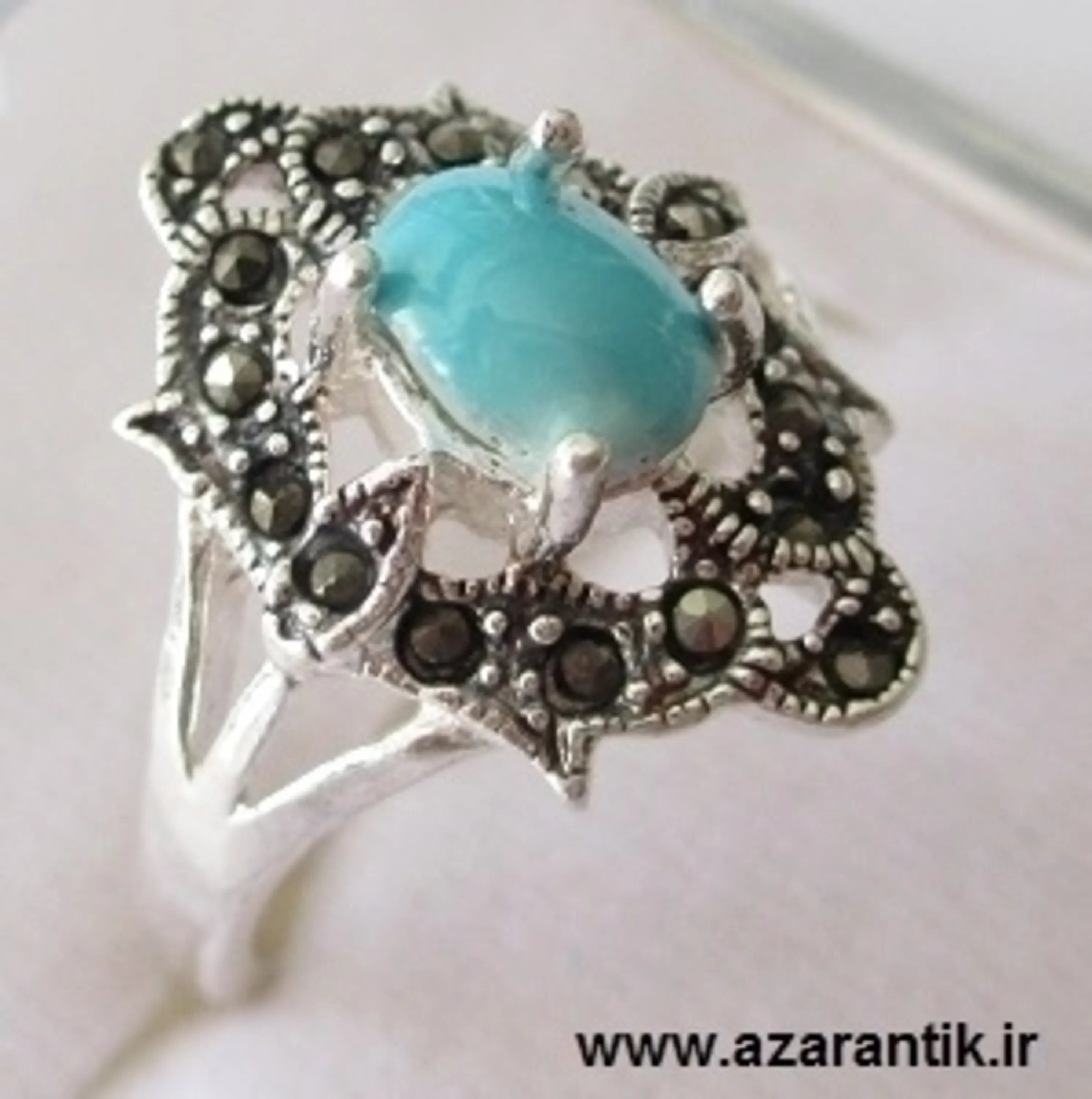 جنس رکاب : نقره عیار 925 | جنس نگین :فیروزه نیشابور اصل + مارکازیت |